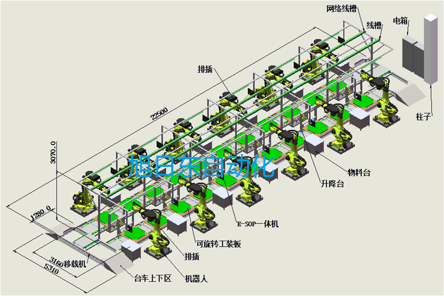 此B超設(shè)備裝配初期比較低,裝配后期又比較高,所以此方案采用了各工位分段獨立輸送且每工位均可單獨升降的方案。為保證產(chǎn)品裝配到高位時方便作業(yè)本方案采用了雙列皮帶輸送結(jié)構(gòu)以便承載面可以降至較低為置。考慮到后續(xù)升級經(jīng)量大到無人化生產(chǎn),此方案...